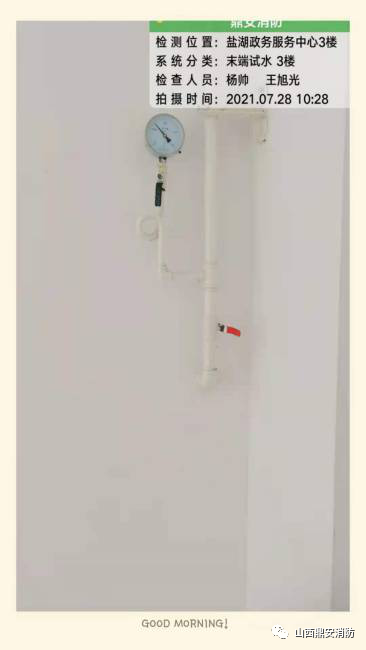 本次检查盐湖区政务服务中心对室内消火栓、喷淋系统末端试水设施进行外观检查、水压静态检测、联动放水喷射试验等。经检查消火栓系统、自动喷淋系统、联动反应系统测试数据正常,系统运行正常